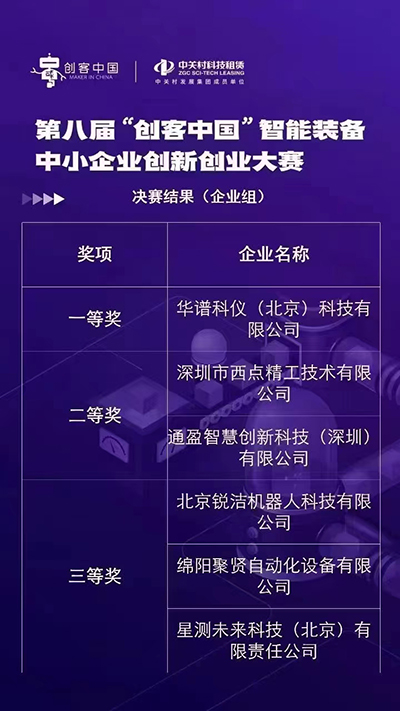 第八屆“創客中國”智能裝備中小企業創新創業大賽企業組一等獎