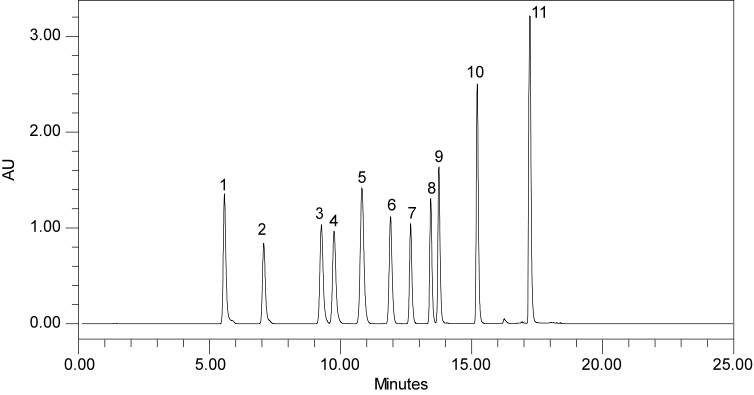 Alphasil系列高效液相色譜柱,以超純全多孔硅膠為基體,硅膠顆粒具有均勻的粒徑分布和孔徑分布,具有高柱效的特點。該系列覆蓋多種鍵合技術和鍵合相種類,滿足用戶多種分析需求。在選擇性、峰形、穩定性等色譜性能方面均表現出色,多用于解決常規通用性分析問題。