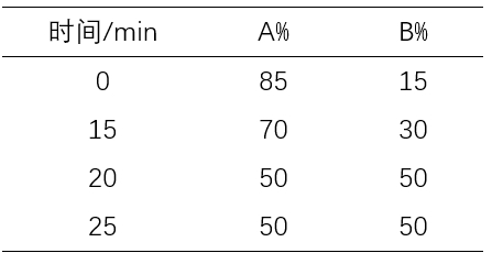 流動相:A_1.8 g/L磷酸氫二鈉溶液(pH=8.9),B_甲醇:乙腈=25:75;