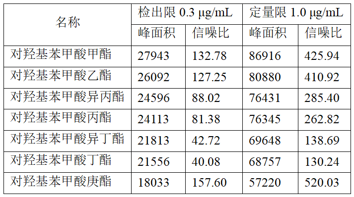 (1-對羥基苯甲酸甲酯;2-對羥基苯甲酸乙酯;3-對羥基苯甲酸異丙酯;4-對羥基苯甲酸丙酯;5-對羥基苯甲酸異丁酯;6-對羥基苯甲酸丁酯;7-對羥基苯甲酸庚酯)