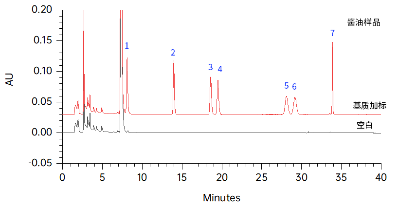 對羥基苯甲酸酯類是常用食品防腐劑,安全性較高、抑菌效果好,但若大量或不正當使用,可能對人體健康造成一定危害。《GB5009.31-2025 食品安全國家標準 食品中對羥基苯甲酸酯類化合物的測定》于2025年9月16日實施,標準新增了高效液相色譜法和液相質譜法,并采用強陰離子交換固相萃取柱進行前處理。華譜科儀結合Alphasil VC-C18,4.6×150 mm,3.5 μm和SelectPrep MAX 500 mg/6 mL固相萃取耗材對醬油、果醬和鹵蛋中對羥基苯甲酸酯類化合物進行測定,檢測結果符合國標要求。